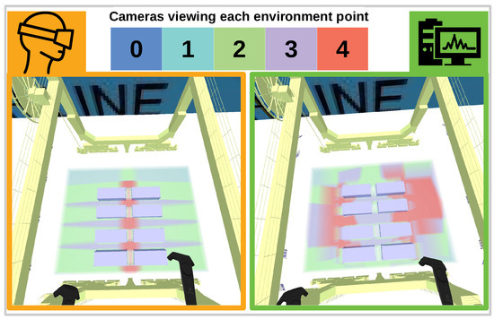 Section 4.4 but it is important to note that this function is only needed to provide the user with a qualitative notion of quality. The user can manipulate all cameras and see the effect on the environment quality in real time. The user is in charge of generating a camera configuration, but can apply geometrical reasoning to solve this problem. Real-time color feedback of the values of