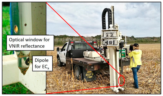 - Cho, Y.; Sudduth, K.A.; Drummond, S.T. Profile soil property estimation using a VIS-NIR-EC-force probe. Trans. ASABE 2017, 60, 683–692. [Google Scholar] [CrossRef]