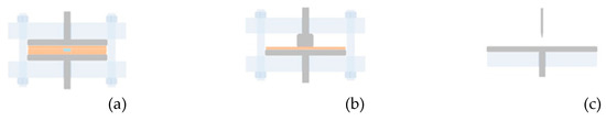 Specimens under testing, simulating (a) internal, (b) surface, and (c) corona defects.