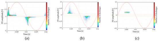 Filter applications on the acquired PD pattern in order to distinguish (a) internal, (b) surface, and (c) corona discharges.
