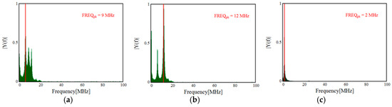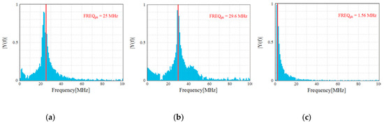 Pulse frequency spectrum of (a) internal, (b) surface, and (c) corona discharges acquired with the HFCT.
