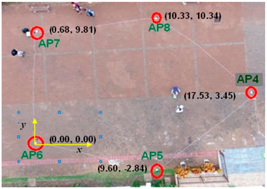 Next, a set of coordinates , marked and identified as known ground points, is located on the covered region. The mobile device is positioned on each of these marked ground points to receive the signals sent by each AP of interest. In this position, the strength of the signal sent by the kth-AP is measured by the mobile device application.