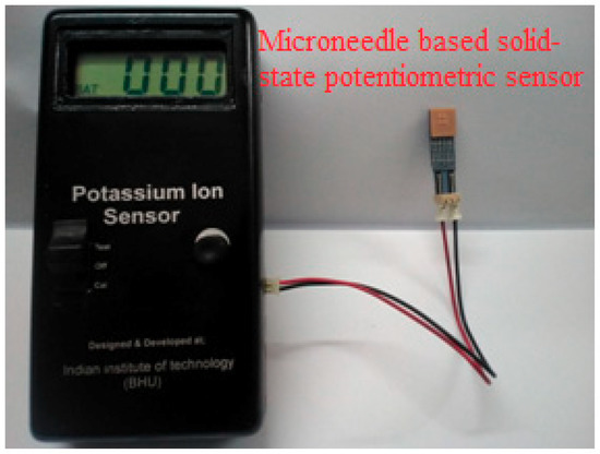 Construction of a microneedle assembly-based screen-printed electrode (SPE)-based potentiometric potassium ion sensor [27].