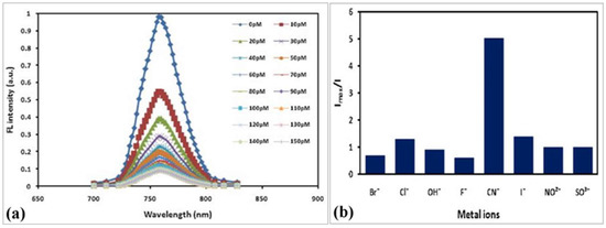 - Al-Agel, F.A.; Mahmoud, W.E. “Turn-off-on” fluorescence probe based functionalized InP quantum wires for detection of cyanide ions. Sens. Actuators B Chem. 2013, 183, 441–445. [Google Scholar] [CrossRef]