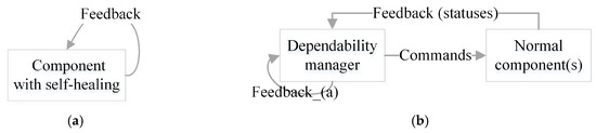 In this paper, we use the term “self-adaptation” to represent the environment-centered adaptation, and the dependability of self-adaptation is mainly about the correctness and safety of decisions. And we use the term “self-healing” to represent the system-centered adaptation, which focuses on improving the dependability of the platform of CPS. “Self-management/self-management” is an integrated concept which includes “self-adaptation”, “self-healing” and more other concepts, such as self-protecting and self-optimization.