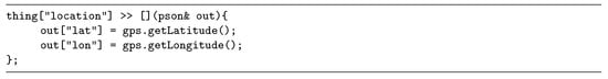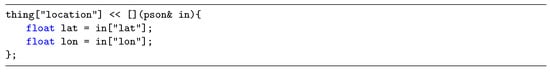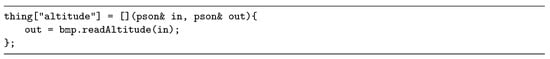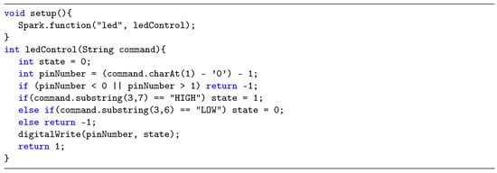 Figure 4 presents a sample code from the Particle platform, which is a state-of-the-art IoT vendor, known for its simplicity. In this example, the