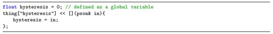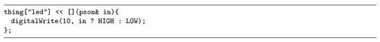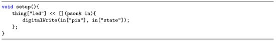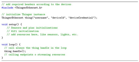 Figure 8 depicts the basic sketch of a Thinger.io program.
