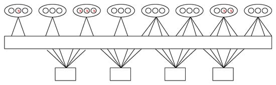 The masking technique can be described as special matrix product operations []. We assume a masking matrix as a binary matrix with size of , then the definition of the product of and is shown as (4).