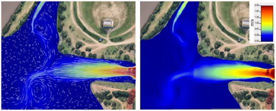 Figure 5 shows the resulting water current velocity map, where the water flows to the left-hand side of the image. Note that the narrow channels have higher speeds. By using the HDF files as input for water_current plugin, our simulation architecture requests the velocity of the water at each of the boat’s position of links. This is done by a ROS service, where the improved FreeFloating Gazebo sends the (x,y) position of each link (see