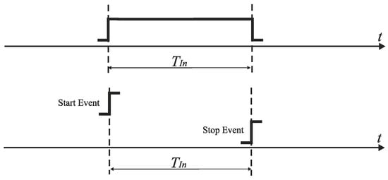 Due to the sharp increase of switching speed and the continuous reduction of voltage headroom in deep-submicron CMOS technologies, the resolution of encoding signals in the time domain becomes superior to the resolution of analog signal amplitude in the voltage domain []. The technique of encoding signals in time instead of in amplitude is expected to be further improved by advances in CMOS technology. To neutralize the scaling-induced design challenges, the signals that originate in the amplitude domain (e.g., voltage) are proposed to be encoded in the time domain [,]. In time-mode signal processing, information is represented by the time intervals between discrete events (Figure 1) rather than by the voltages, or currents in electric networks. The detrimental effect of technology scaling on the performance of voltage or current-mode analog signal processing is in time-mode circuits alleviated. Furthermore, time-mode circuits are less sensitive to interferences than voltage-mode circuits (e.g., cross talk, or substrate coupling).