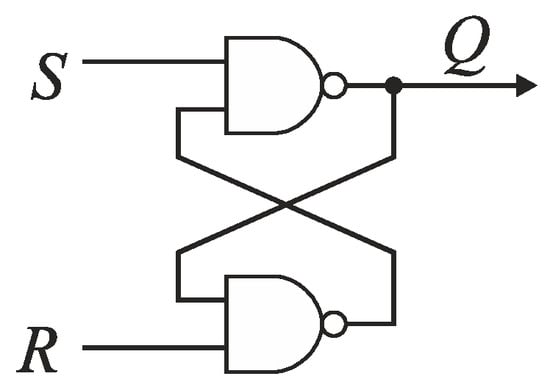 The detection of this rising edge (S or R) that arrives to the input of cells Cn−1, …, C0 as the first is carried out by the RS latch Fk (Figure 13). If the states on RS latch inputs (S and R) are low, then an output Q of the latch Fk is kept high. If a rising edge of the reference R precedes the edge of signal S, then Q becomes low. Otherwise, Q state is high. The output Q is used to control the pair of switches SRi and SSi. The closure of one of switches allows to guide the leading edge of signal (S or R) to the delay line.