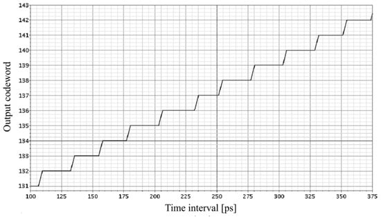 Transfer characteristics of 8-bit SA-TDC with symmetrized multiplexers for T0 = 25 ps and Tm = 250 ps.