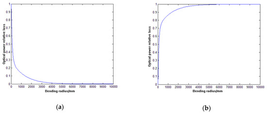 (a) relationship between positive bending relative optical power loss and bending radius; (b) relationship between negative optical bending relative optical power loss and bending radius.