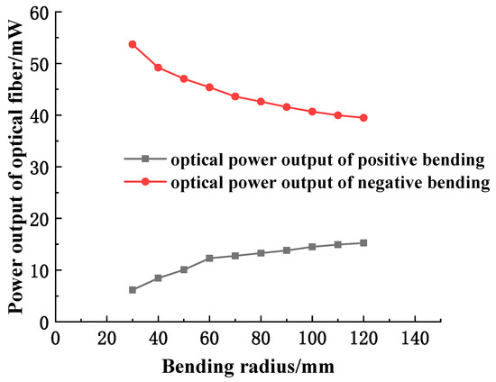 According to the curve, the relationship between the output power of the fiber and the bending radius can be known as follows: When the sensitive region of the fiber is bent positively, the output optical power of the fiber gradually increases with the increase of the bending radius; when bending is negative, the opposite is true.