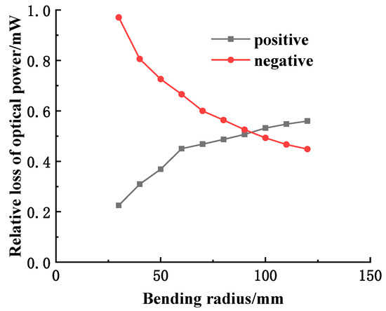 - The accuracy of the model of bending power relative loss and bending radius is verified by measuring the optical power loss in the sensitive region of the fiber, and the characteristics of positive and negative bending are explained effectively.