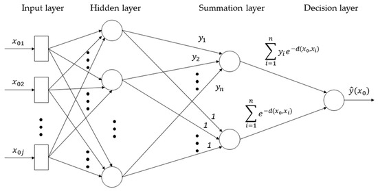 where denotes the dimension of variable vector , is the spread parameter, whose optimal value is determined by minimizing the root mean square error (RMSE) between the training data and the predicted values of the dependent variable.