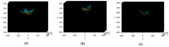 A non-uniform grid sample algorithm was adopted for point cloud down-sampling and the sparse point clouds were obtained, shown in Figure 6j–l. The point number of the sparse point cloud is 4,096, but all the characteristics of dense point cloud were completely preserved. The reduction of the point number will also reduce the computation time of the GMM algorithm simultaneously.