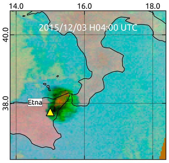 - Smiljanic, I.; Setvak, M.; Prata, F.; Kerkmann, J. On 3 December, for the first time in two years Mount Etna, erupted.” EUMETSAT Image Library (blog), EUMETSAT, December 2015. Available online: http://www.eumetsat.int/website/home/Images/ImageLibrary/DAT_2868529.html (accessed on 17 January 2019).