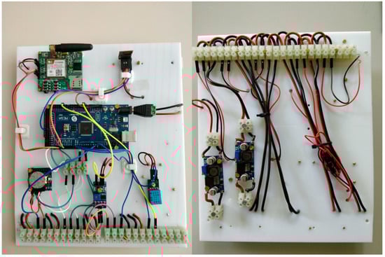 A solution, named 4onse-mod, has been specifically designed to maximize the reproducibility of the system by using common materials available worldwide (devices, box, screws, etc.) as much as possible. It is based on a Plexiglas board that hosts the power regulation controls on the back side, and all the other components on the front side (Figure 1). This choice facilitates the sensor replacement and prevents the user interaction with the power cables.
