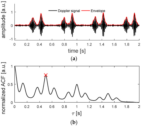 Methods for estimating the fHR from Doppler US signals typically make use of an autocorrelation function, where the envelope of the Doppler signal is correlated with a delayed copy of itself [