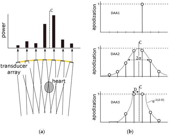 31]. The true inter-beat interval may not be correctly determined, as the signal shape changes due to different insonifcation angles rather than different way of how the heart is contracting. Therefore, the strategy to first compute the power center and then define the apodization using a window-based approach may be preferred.