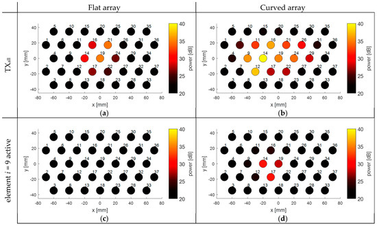 Figure 8c,d). When all elements of the flat array are transmitting (