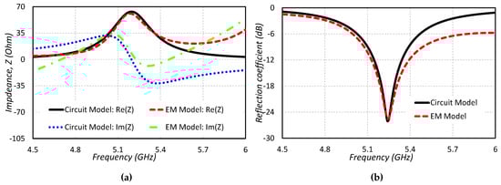 Figure 3. Comparison of the EM model and equivalent circuit model: (a) Impedance (b) Return loss.