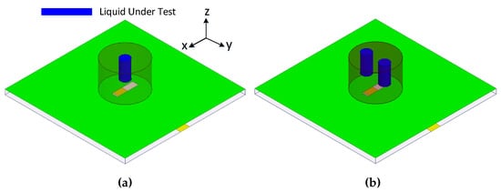 Figure 5. Types of DRA-based sensors (a) Type 1: One cylindrical microwell for liquid testing (LT) (b) Type 2: Two cylindrical microwells for LT.