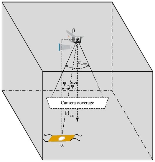 Several factors are investigated before permitting data transmission by OCC. The patch LED will be ready for data transmission only when it is detected by a camera. However, when the number of strips projected in the image sensor is less than , the camera cannot extract data even if the LED is inside the AOV. This problem can occur in two circumstances. First, the Euclidean distance is considerably high between the camera and the patient. Second, the projected image appears in a corner of the image sensor, and the camera confronts the projection of a very small part of the LED. In both cases, can be lower than . Hence, the communication can be instantly terminated in this condition. Therefore, a critical threshold of is significantly required to confirm the reliability of the OCC scheme. The threshold is denoted by whose value is only above The value of varies for the cameras with different characteristics.