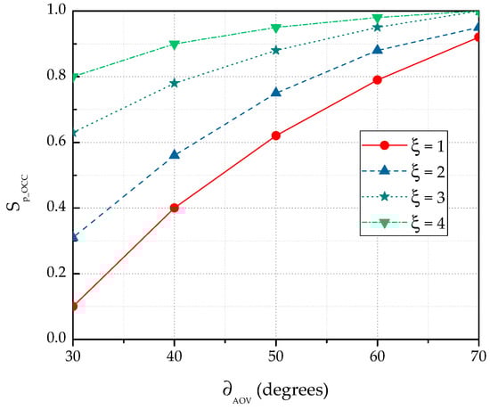 Figure 8, we considered both the LOS and NLOS scenarios. However, when monitoring a patient in intensive care, the outage probability of OCC is low because the patient is static and the NLOS caused by the patient’s movement is non-existent. In addition, the outage probability can be minimized by increasing the number of cameras. As is evident in