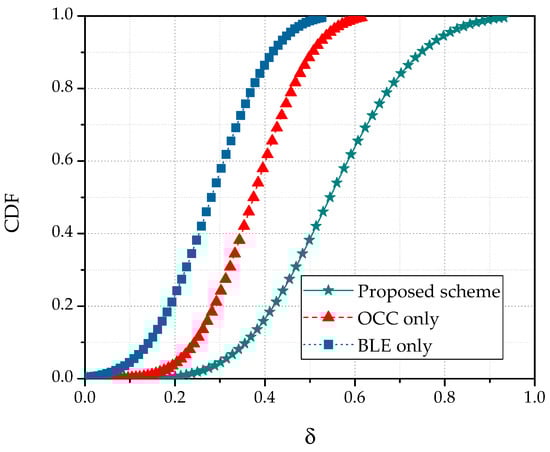 Figure 10. The cumulative distribution function (CDF) was calculated over the distance range 0.5–4 m. The CDF of the QoS increased with increasing difference between