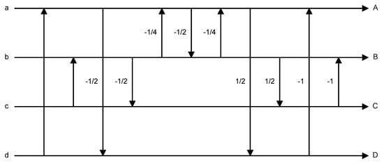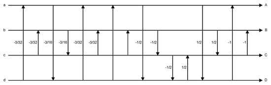 Using the same method as Equation (2) and Figure 13b, the inverse 4 × 4 POT can be expanded; the result is Equation (10).