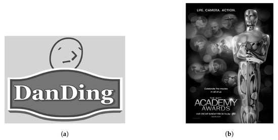 Test images, Part 2. (a) logo, 1024 × 768; (b) Poster [30], 840 × 1224.