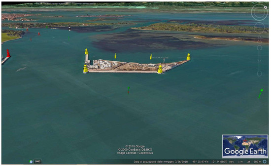 Ji-Min Yeo, et al. studied the implementation of an AtoN database including the integrated system design to develop an AtoN simulator system [15]. In the same way, we set an elementary simulation process using Google Earth Pro (v. 7.3.2.5491) as supporting tool. Among the other features, this software allowed the overlap of the Lagoon official bathymetric and cartographic data to the satellite images. We could then import all the AtoN from our database to get an overall view on the area, thus allowing a more intuitive detection of the current issues and the consequent optimization of the entire AtoN system.