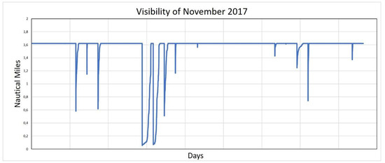 We searched for an innovative tool complementary to the existing AtoN system to manage the problem of the ban on navigation in the Lagoon in case of thick fog: this condition, which frequently occurs in the Lagoon in winter and autumn (Figure 3), do not assure the required safety level according to the Authorities, forcing them to interdict the area and close the ports.