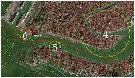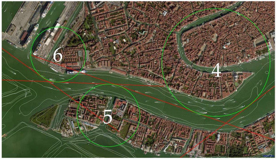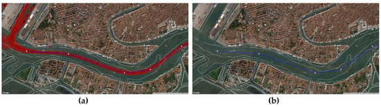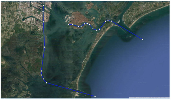 As a result, we defined fourteen V-AtoN in the Giudecca Canal, to allow vessels coming from the Lido inlet to get to the mooring (Figure 13). Similarly, nine V-AtoN have been defined to lead the ships to the Evolution Basin N° 1 in Marghera from the Malamocco inlet (Figure 13).
