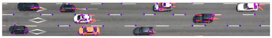 An optical flow method was chosen as the third reference model. Figure 17 shows a sample image with motion vectors after applying an optical flow method based on a 0.1 s time gap. The OpenCV library provides functions relevant to deriving motion vectors from video images. The space mean speed was computed from the length of the motion vectors.