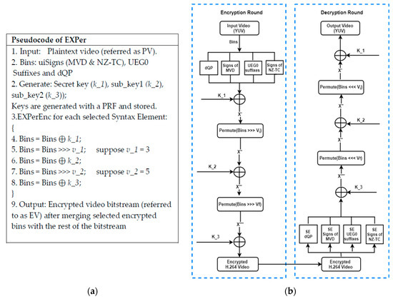 (a) Pseudo-code and (b) graphical flow of EXPer cipher.