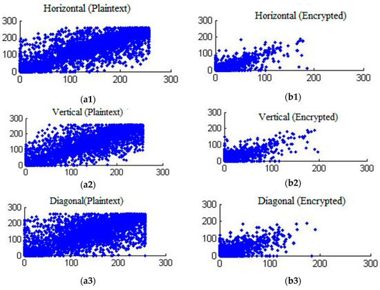 where , are the mean intensity values of pixels the original and distorted video frames. The values of the r ranges from 1 to −1. When two frames are the same, the correlation index is at a maximum, which is 1. Therefore, a lower value of correlation coefficient indicates higher distortion as a result of encryption. Table 6 (columns 4 and 5) presents calculated cross correlations between encrypted and compressed video frames. The average value of the pixel correlations among the plaintext and encrypted video frames is near to zero, confirming that video sequences encrypted with EXPer are considerably distorted in a statistical sense, thus providing good confidentiality.