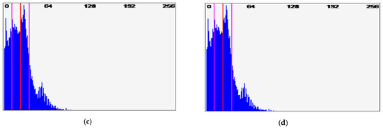 where f is the gray-level value and p(f) is the probability of f. Figure 13 is a comparative entropy histogram of mobile video frames encrypted with XOR, AES and EXPer. This entropy is evident in the spreading of more black and sharp colors (shown in Figure 5; Figure 9) across the video frames, compared to the original histogram values (Figure 13a) prior to applying SE with either one of the three ciphers to the selected syntax elements taken from the mobile video sequence.