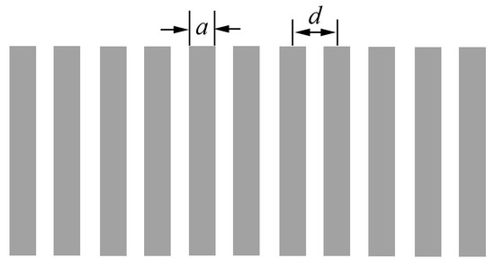 According to Equation (3), the number of array elements , the width of array elements a, and the pitch of array elements d (as shown in Figure 3) directly affect the directional sound field of microscale phased-array ultrasonic transducers, which is an important parameter for the design optimization of phased-array ultrasonic transducers. The transverse sound field of microscale linear phased-array ultrasonic transducers should have narrower main lobe width, higher main lobe strength, lower side lobe and no gating lobe. Next, the influence of parameter changes of microscale linear phased-array elements on transverse sound fields of the transducer are discussed, and theoretical analysis is carried out to provide theoretical reference for preparation of the transducer.