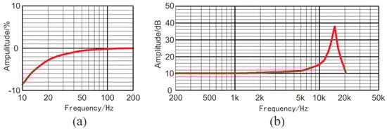 The amplitude responses of the three-component piezoelectric sensor: (a) low-frequency, (b) medium- and high-frequency.