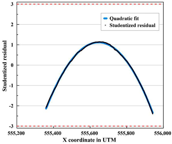 Linearity assessment using studentized residuals of the trajectory of the IBRV Araon during the period of acquisition of the image subsets.