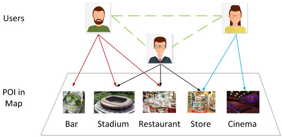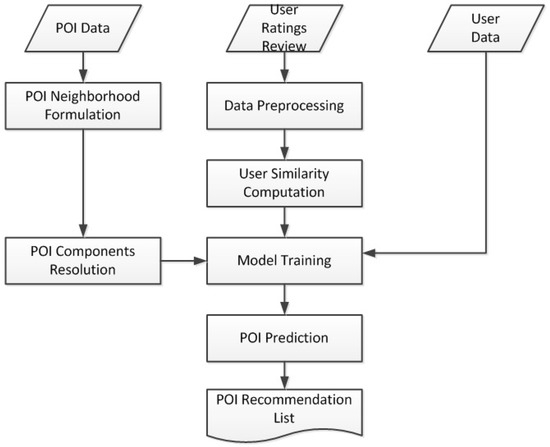 - Lian, D.; Zhao, C.; Xie, X.; Sun, G.; Chen, E.; Rui, Y. Geomf: Joint geographical modeling and matrix factorization for point-of-interest recommendation. In Proceedings of the 20th ACM SIGKDD International Conference on Knowledge Discovery and Data Mining, New York, NY, USA, 24–27 August 2014; pp. 831–840. [Google Scholar]