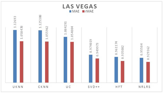 MAE and rMAE Comparisons of different methods (F = 10, KNN = 150) -Las Vegas.