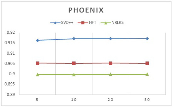 In Figure 7 we show a plot of the recommendation prediction of all the latent factor models across different latent factors using Phoenix datasets.