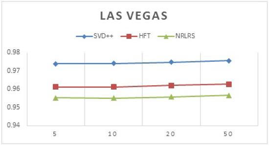 Below are the prediction results for latent factor model algorithms with varying factors in Las Vegas (shown in Figure 8).