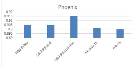 We use librec1.4 a recommendation system library in java for algorithms implementation and extension [44]. For all the latent factor models we set the default otherwise stated. We set the learning rate , momentum = 0.8 and the weights and . The results of comparison are presented per city (Phoenix and Las Vegas) and are reported in Table 2 and Table 3.