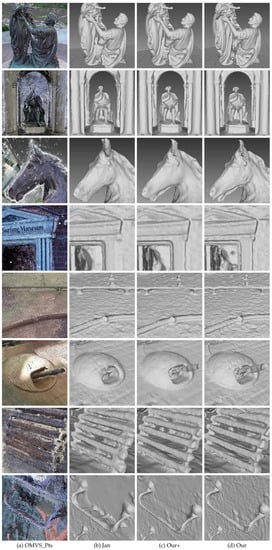 - Jancosek, M.; Pajdla, T. Exploiting visibility information in surface reconstruction to preserve weakly supported surfaces. Int. Schol. Res. Not. 2014, 2014, 798595. [Google Scholar] [CrossRef] [PubMed]