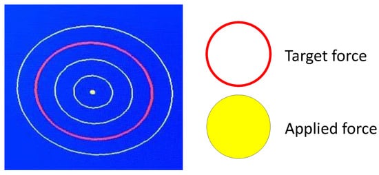 However, eccentric contraction training requires appropriate force along with sufficient velocity, which is determined based on position control. In general, it is difficult to accomplish a position/velocity command and a force command simultaneously. Compliance control is a common solution for the system with position and force commands, despite resulting in compromising the two commands. This study addresses the issue by introducing a control architecture shown in Figure 3. The lower part of the block diagram stands for the control system described in Figure 2, which denotes the common position control of a robot. The upper part shows that the external force applied by the subject works as a kind of feedback with the subject adjusting the force based on the information on the display. External force applied from the subject becomes more accurate by substituting the somatic sense of the tip force to biofeedback with force visualization. This system can accomplish both position control and force control by individually distributing each role to the robot and the subject.